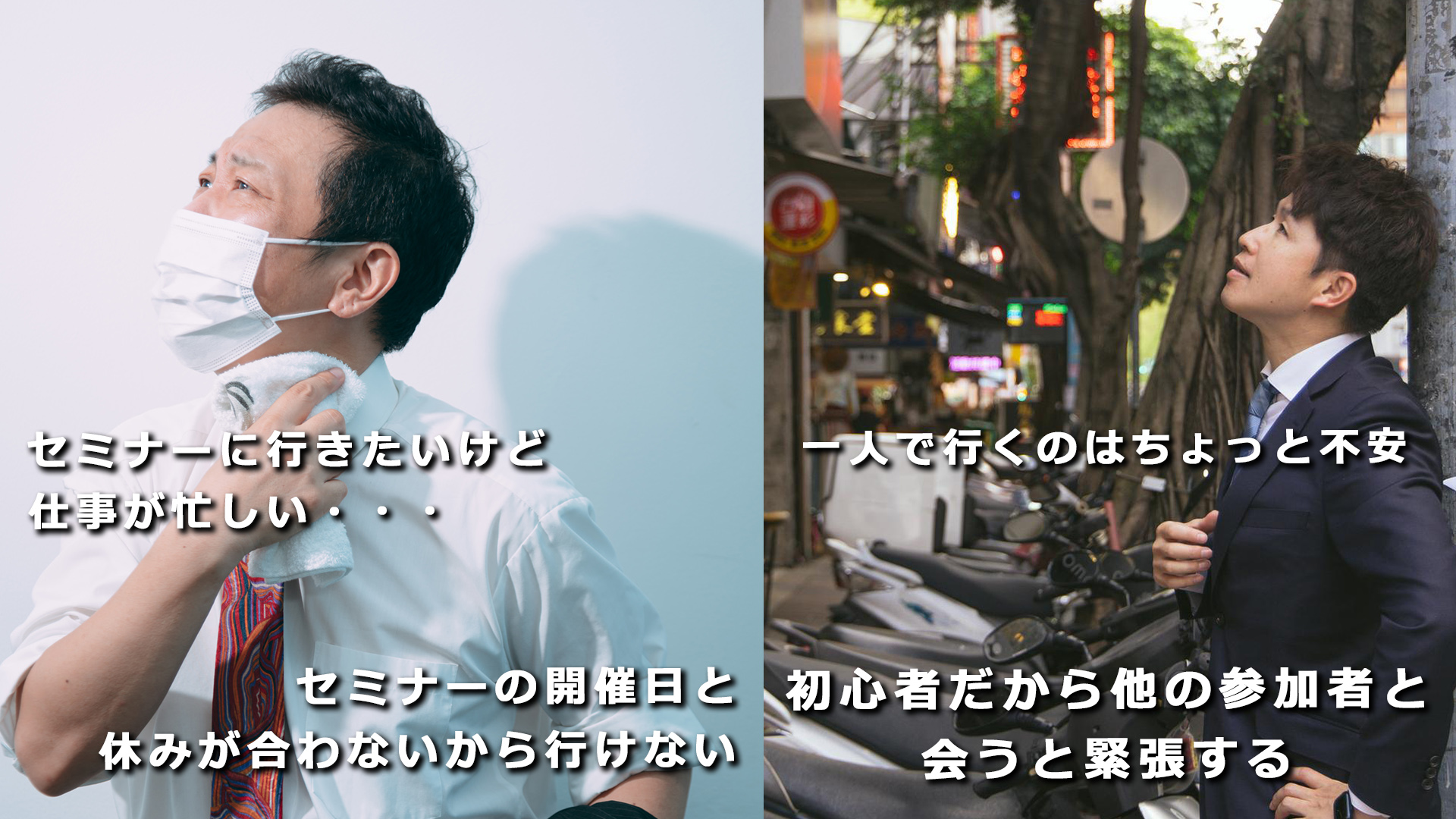 仕事が忙しく日程の合わない方や、一人でセミナーに行くのは不安と言った方におススメです。