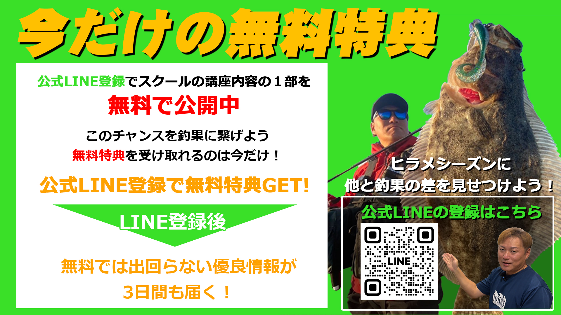 また、毎週金曜日に公式LINEを配信していますので、釣果のアドバイスや役立つ情報が手に入りますので、是非この機会に公式LINEの登録をお願い致します。